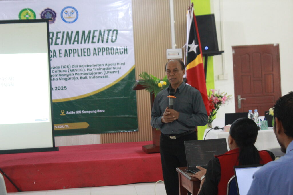 Selanjutnya, Rektor ICS Leão Borges, S.Sos., M.PH. dalam sambutannya menyampaikan terima kasih atas kolaborasi yang telah terjalin dengan baik. Beliau menekankan bahwa pelatihan ini sangat penting untuk mendukung pengembangan kompetensi dosen dan tenaga kependidikan di lingkungan ICS, terutama dalam menghadapi tantangan pendidikan di era transformasi digital dan globalisasi. Rangkaian pelatihan selama enam hari ini berlangsung dalam bentuk pemberian materi, diskusi interaktif, praktik langsung, serta kegiatan reflektif. Peserta mendapatkan pendampingan langsung dari Instruktur Undiksha yang berkompeten di bidangnya.
