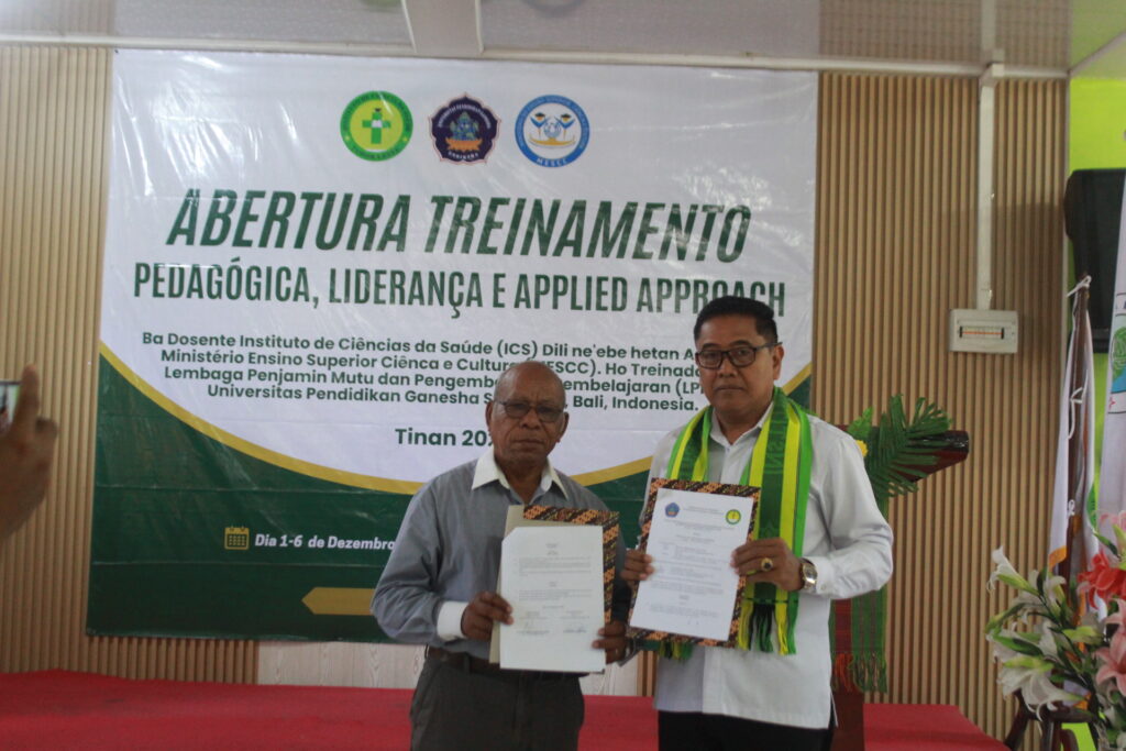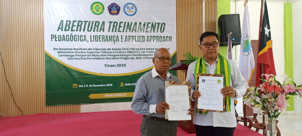 Dili – Universitas Pendidikan Ganesha (Undiksha) melalui Lembaga Penjaminan Mutu dan Pengembangan Pembelajaran (LPMPP) kembali menunjukkan komitmennya dalam memperkuat kapasitas pendidik dan tenaga kependidikan di tingkat internasional. Pada tanggal 1–6 Desember 2025, Undiksha menyelenggarakan rangkaian Pelatihan Pedagogi, Pelatihan Aplied Approach (AA), dan Pelatihan Kepemimpinan yang berlangsung di Instituto De Ciências Da Saúde (ICS), Dili, Timor Leste.